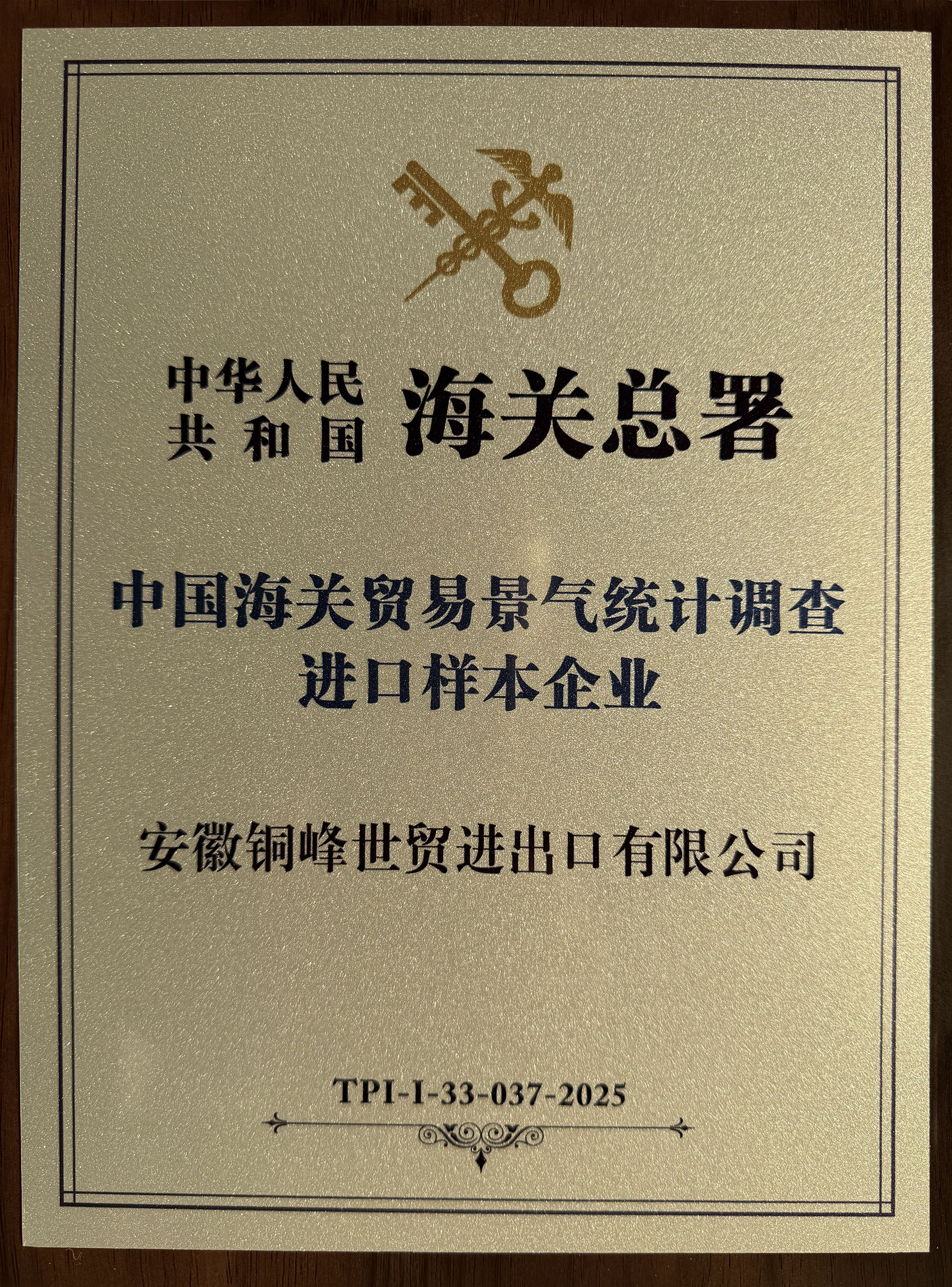 銅峰世貿(mào)進出口公司獲評“中國海關(guān)貿(mào)易景氣統(tǒng)計調(diào)查進口樣本企業(yè)”